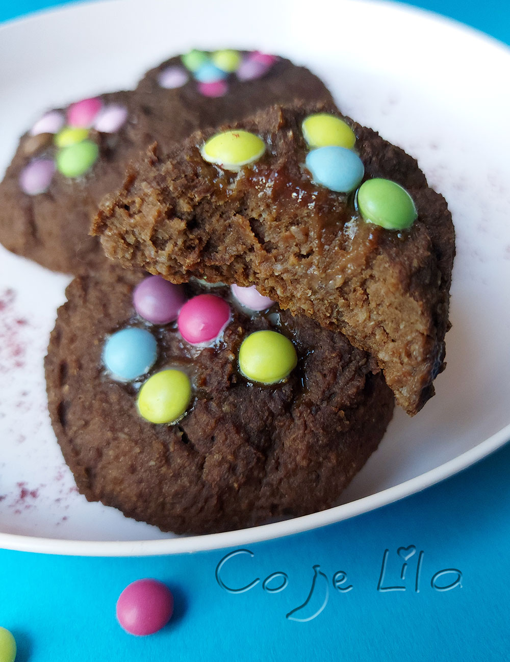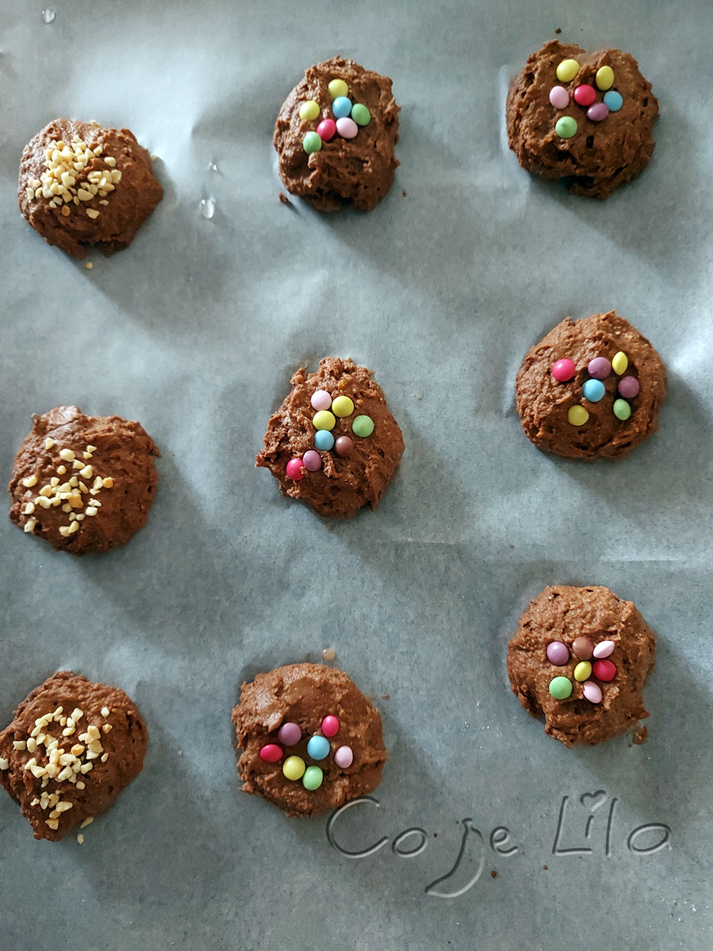 Upiekłam z karobem i mąką migdałową (musiałam dosypać jej więcej niż w przepisie, bo masa wydała mi się zbyt rzadka). Wyszły pyszne, z fajnym orzechowym posmakiem. Jutro serwuje synkowi, a sama daje sobie po łapkach, żeby wszystkich ciasteczek nie zjeść! 😋
