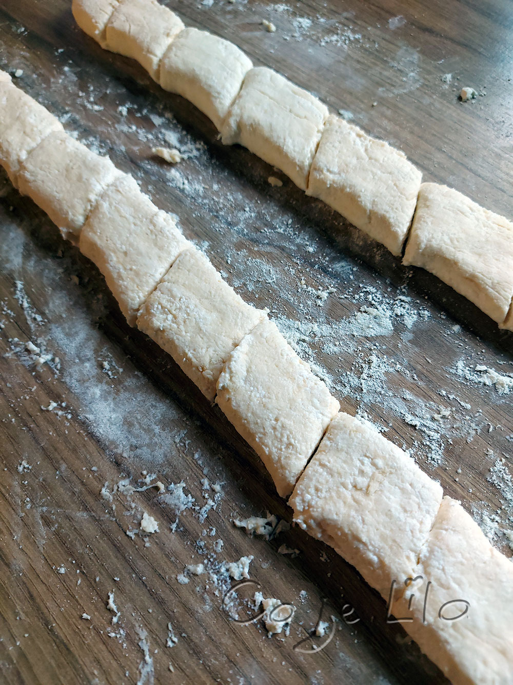 Nie dodawaj za dużo mąki, ani nie zostawiaj za długo na blacie, bo kluski wyjdą twarde.