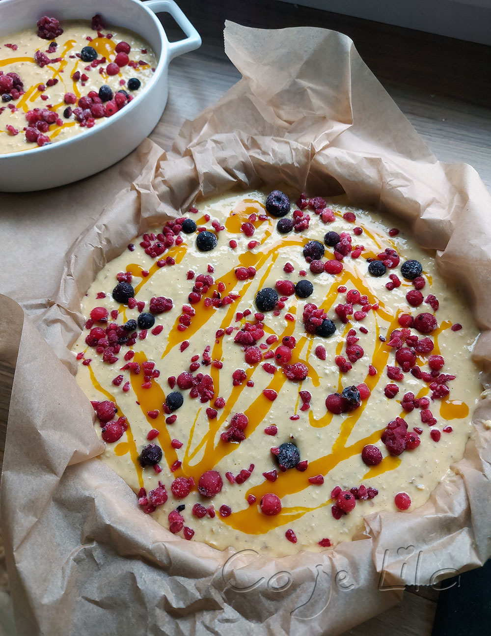owoce na wierzch (u mnie porzeczka mrożona)
