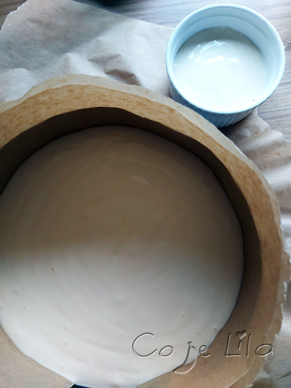 Białą czekoladę rozpuszczamy (ja dodaję ok 5 łyżek mleka i rozpuszczam w mikrofalówce). Miksujemy wszystkie składniki bez jajek i białej czekolady. Dodaję jajka, chwilę miksuje, odlewam małą porcję dla Lilki, dodaję białą czekoladę, pokruszony słodzik, mieszam i przelewam do tortownicy.