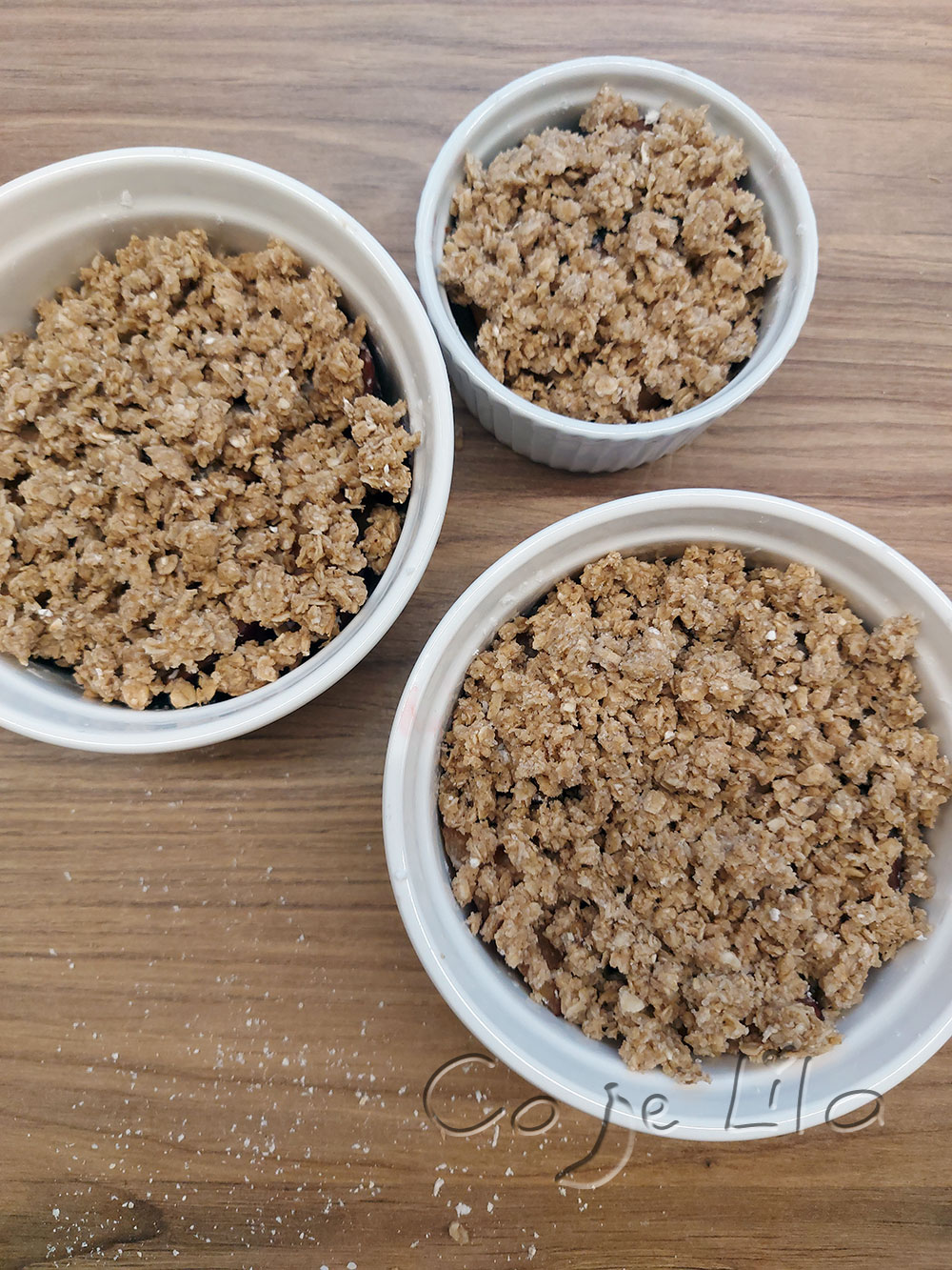 Dla młodszego dziecka zrób kruszonkę z mąki owsianej zamiast płatków. Ja użyłam płatków błyskawicznych.