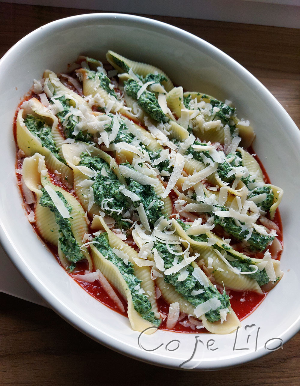 Wbrew pozorom zapiekane muszle makaronowe ze szpinakiem i ricottą to bardzo szybkie danie, nie licząc nadziewania makaronu 😊 Jeżeli masz w domu małego pomocnika to nie zapomnij go zaangażować 😊